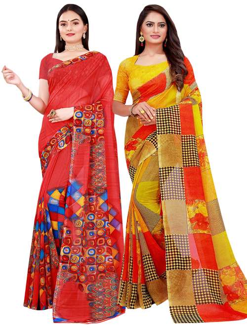 pack of 2 printed casual wear sarees with blouse - 21396260 - Very Small Image - 1