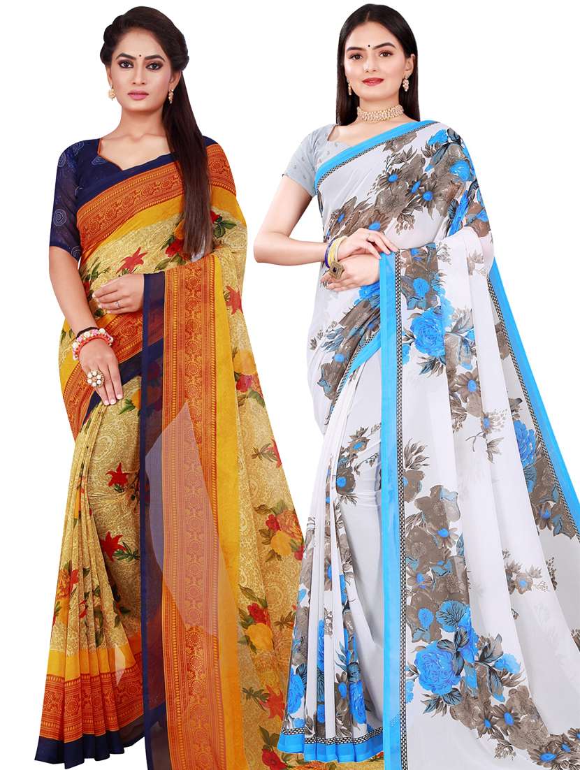 women pack of 2 casual wear combo sarees with blouse - 21456118 - Very Small Image - 1
