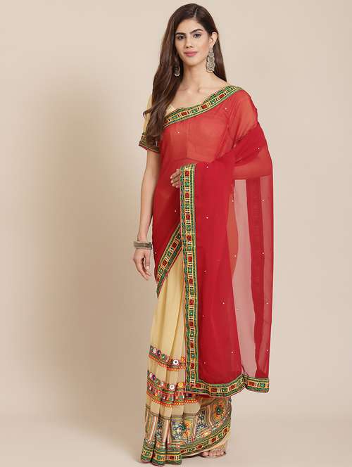 women beige embroidered half and half saree with blouse - 20831082 - Very Small Image - 1