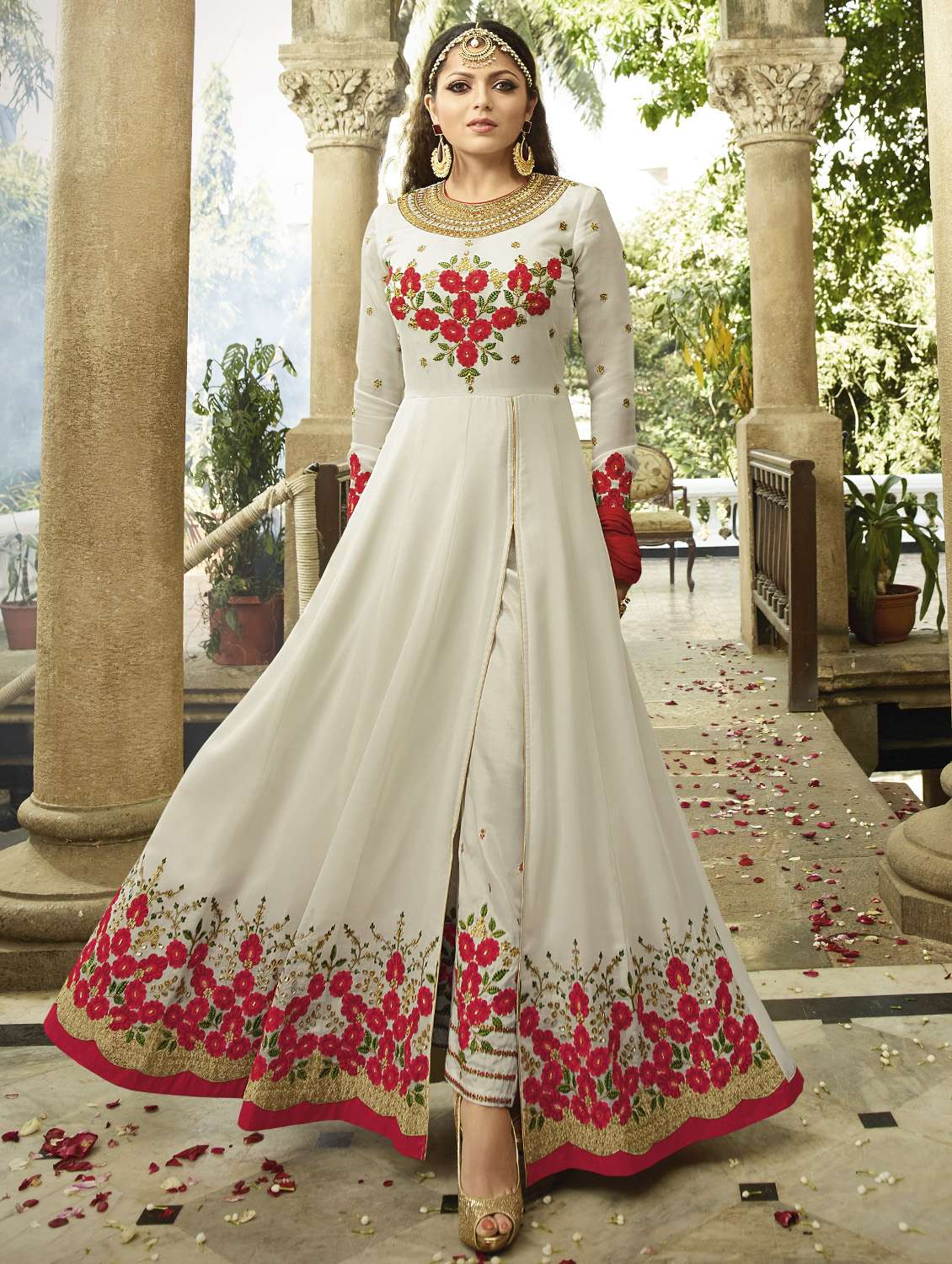 - » embroidered semi-stitched anarkali suit