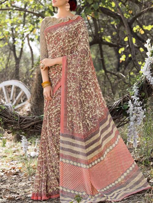 - » cream georgette printed saree with blouse