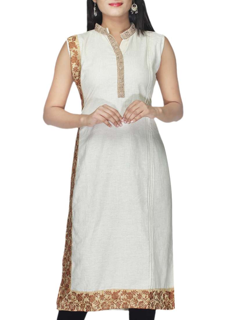 cream cotton kurti - 10126681 - Very Small Image - 1