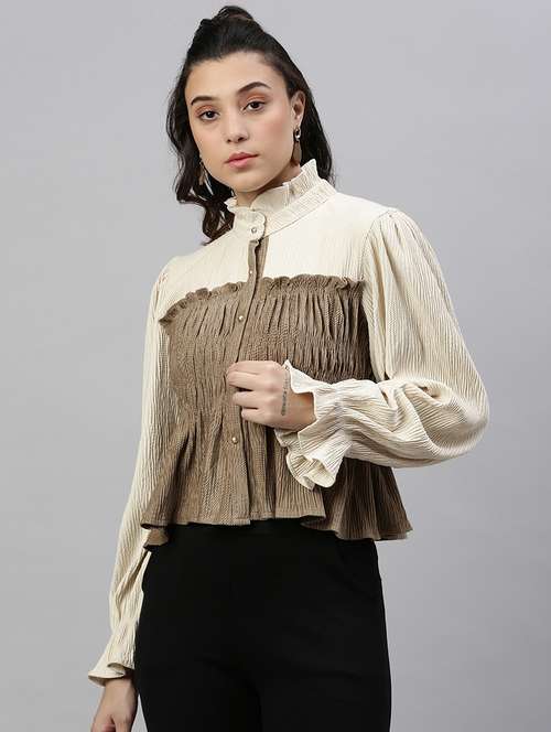 cream color block flared top