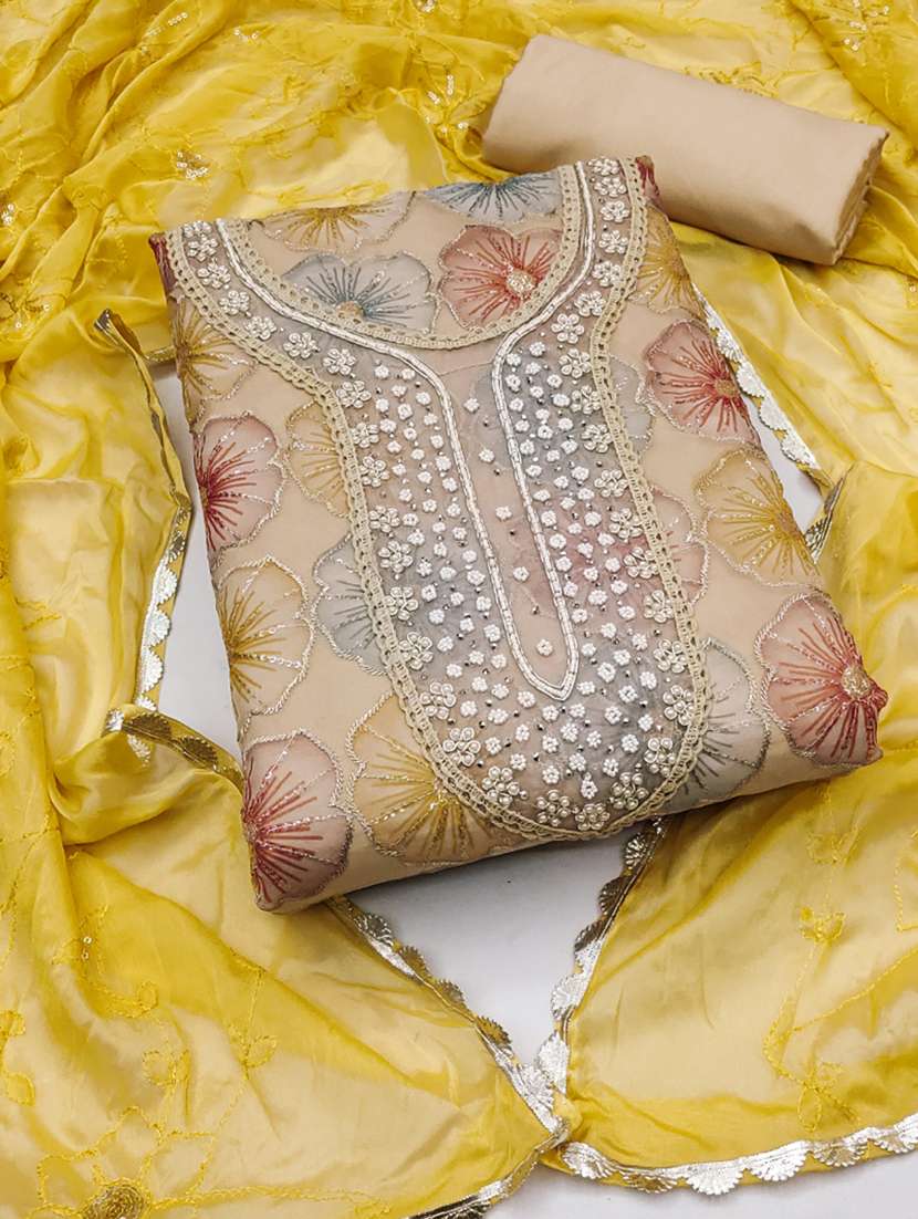 women embellished floral unstitched suit set
