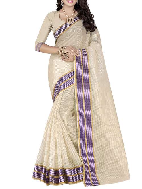 beige cotton blend saree with blouse - 14887347 - Very Small Image - 1