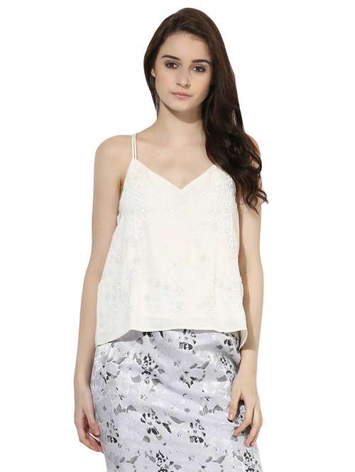 cream embroidered a line top