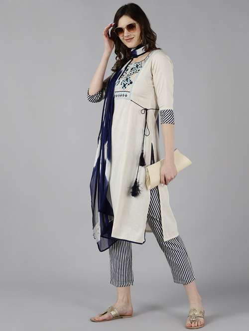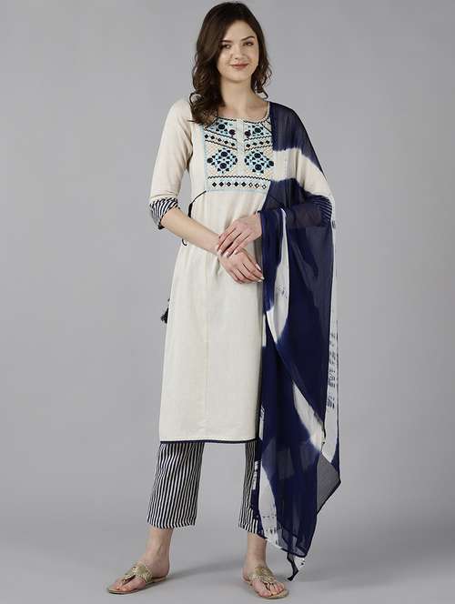 - Find gorgeous sets of ethnic wears in trending designs in cream colors suitable for casual wear of occasions.