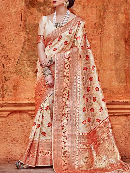 floral zari motif banarasi saree with blouse - 15478775 - Very Small Image - 1