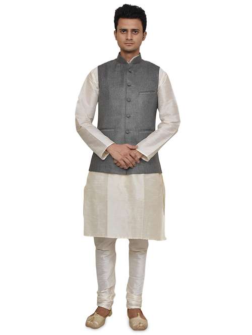 - » cream silk blend kurta pyjama with jacket ethnic wear set