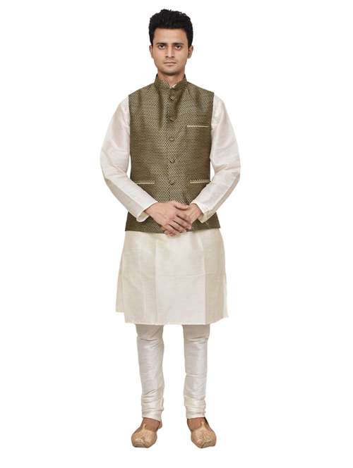 - » cream silk blend kurta pyjama with jacket ethnic wear set