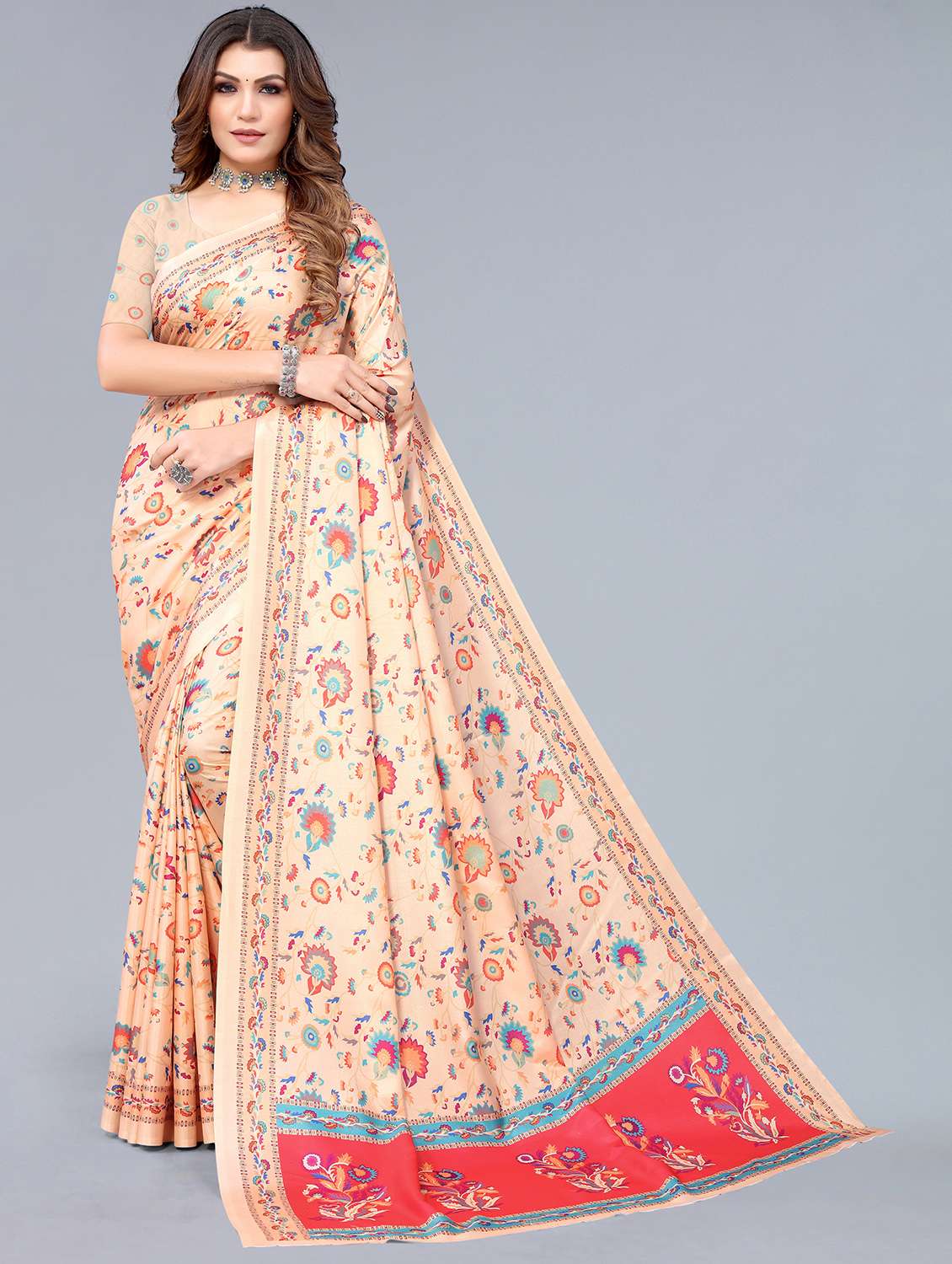 - » women's floral beige colored saree with blouse