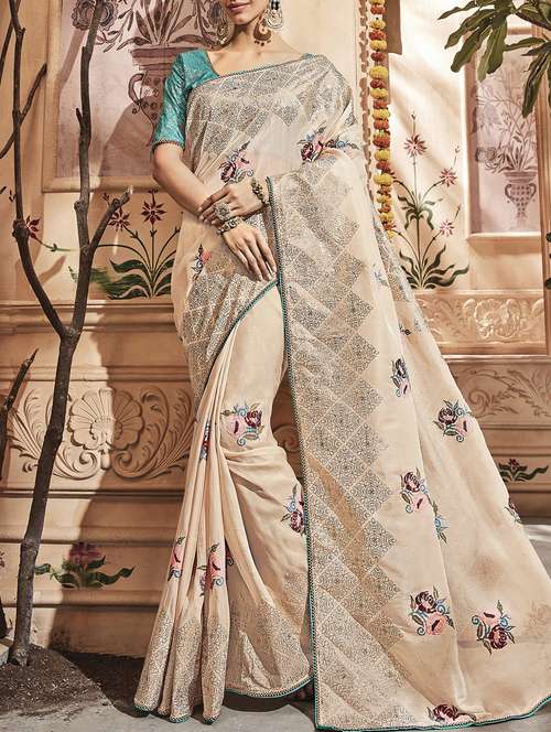 floral embroidered saree with blouse