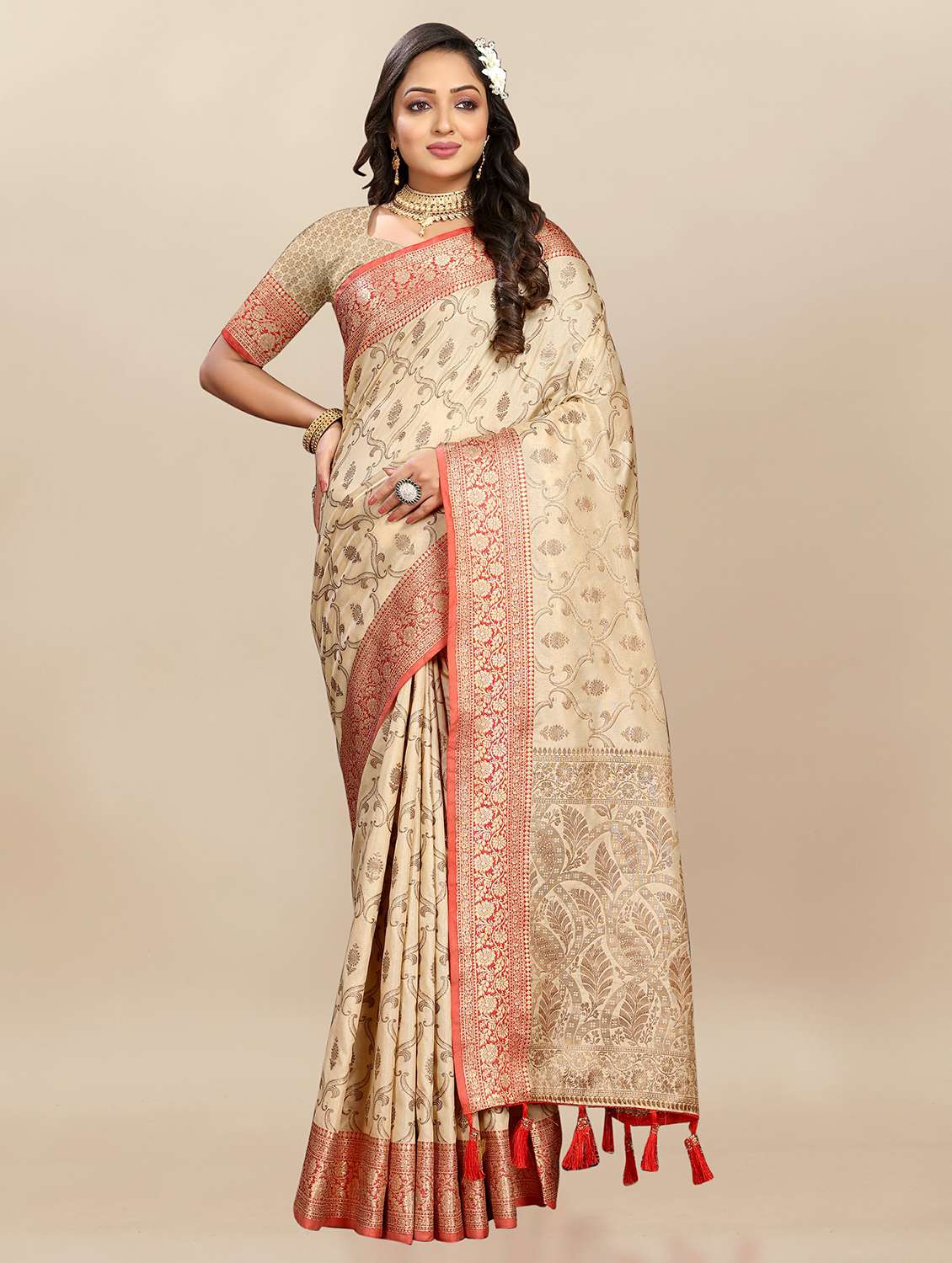 women self design banarasi silk saree with blouse