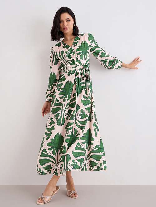 - Dress up in a soothing pattern and don this dress made of polyester material.