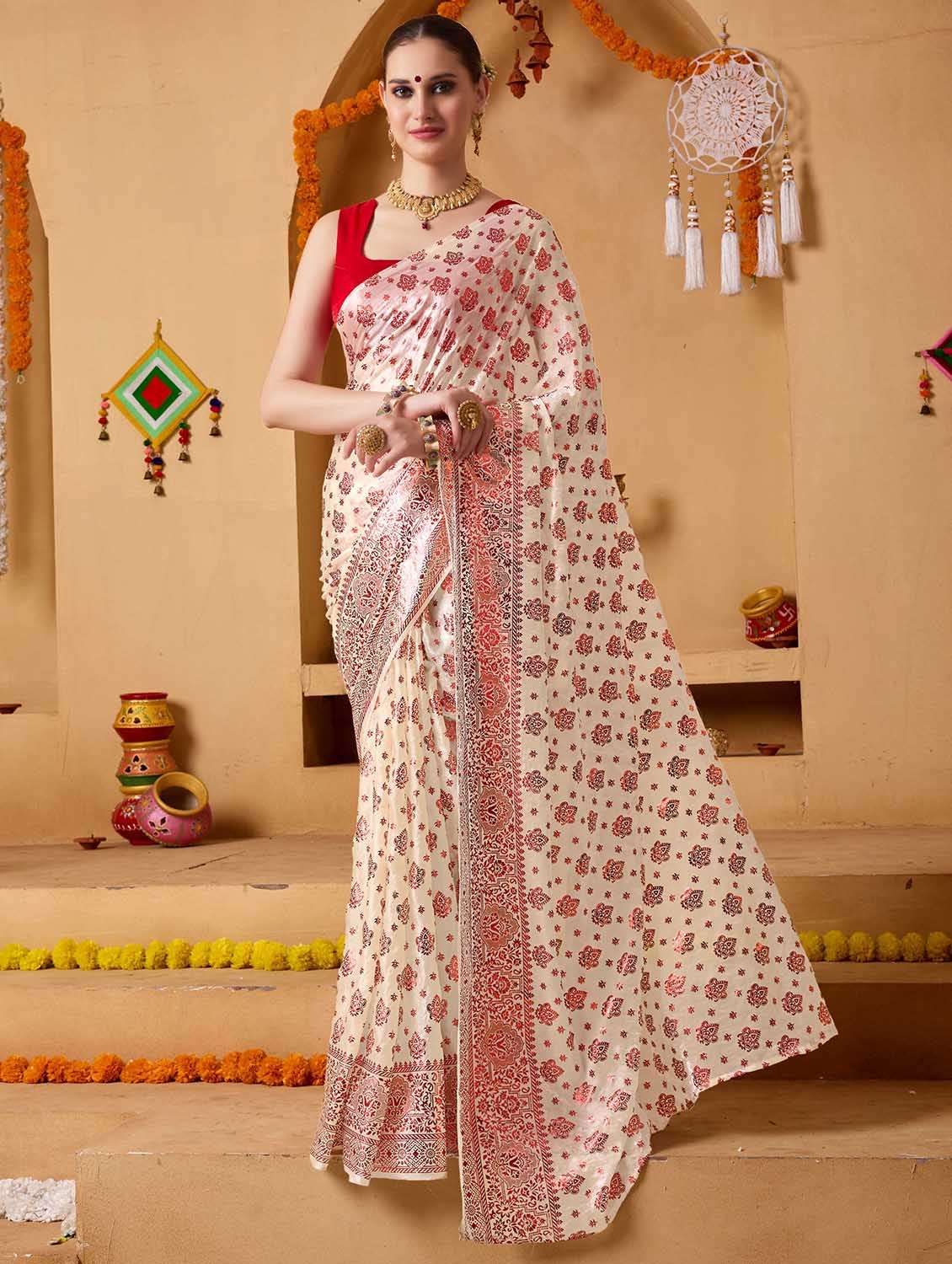 - » women printed casual wear saree with blouse