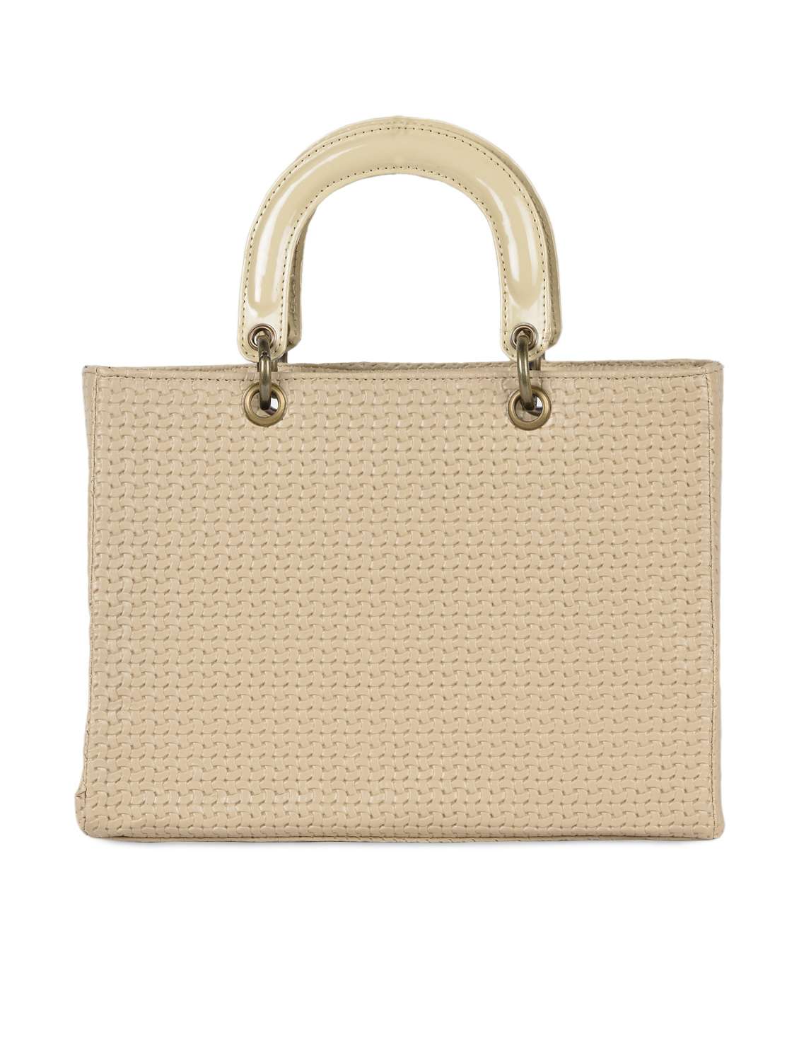 CREAM WEAVED TEXTURED HANDBAG