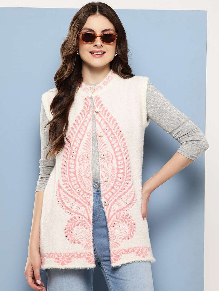 women self designed sleeveless cardigan
