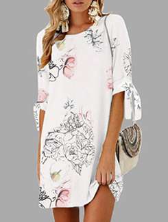 - » tie up sleeved floral shift dress