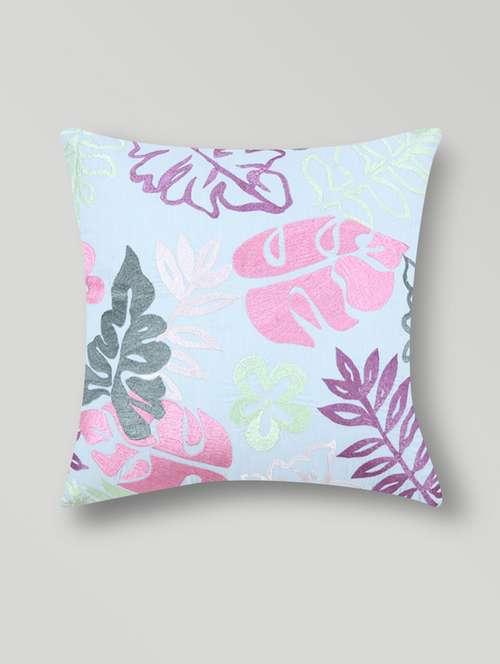 - » set of 2 sky blue embroidered cotton cushion covers