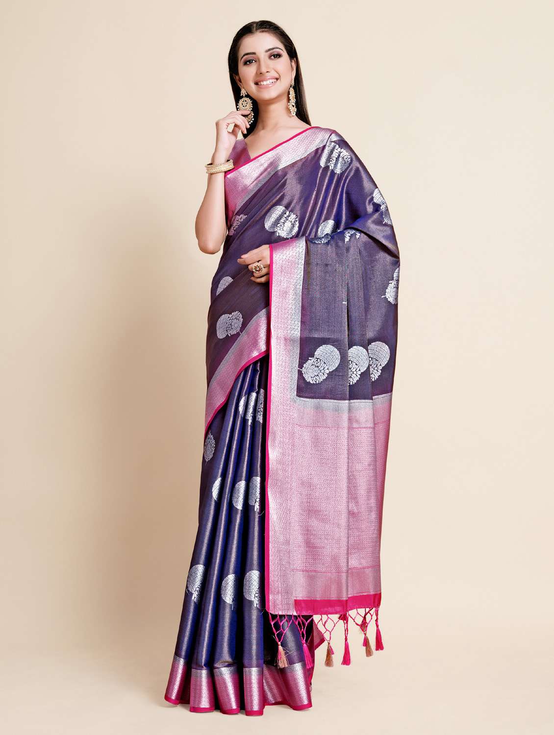 dark blue art silk kanjivaram saree with blouse - 18801398 - Very Small Image - 1