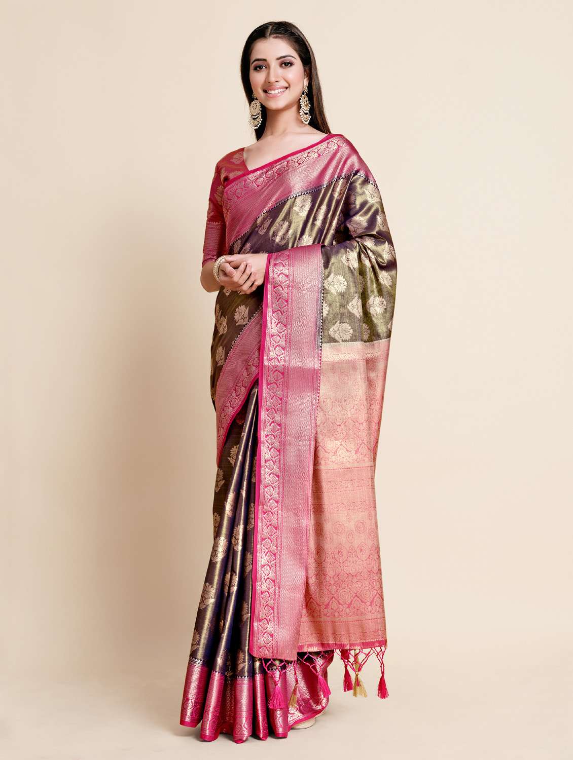- » women's self design olive colored saree with blouse