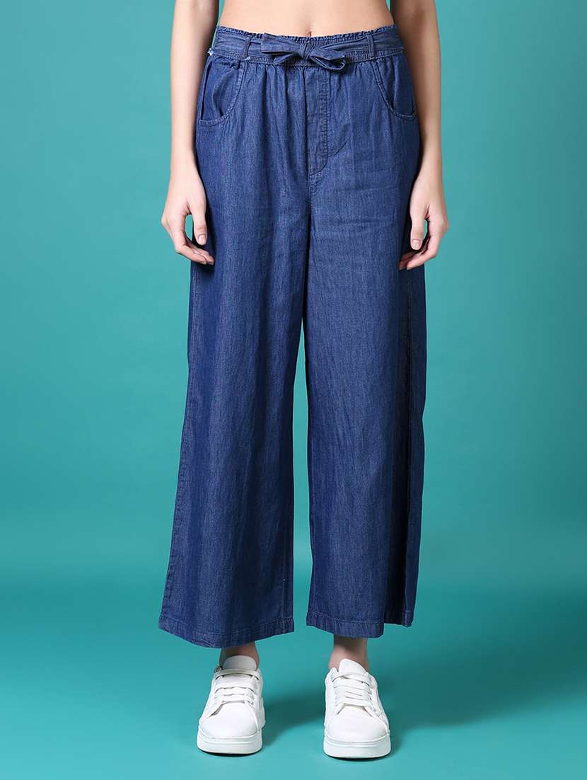 - » women solid high rise wide leg jean