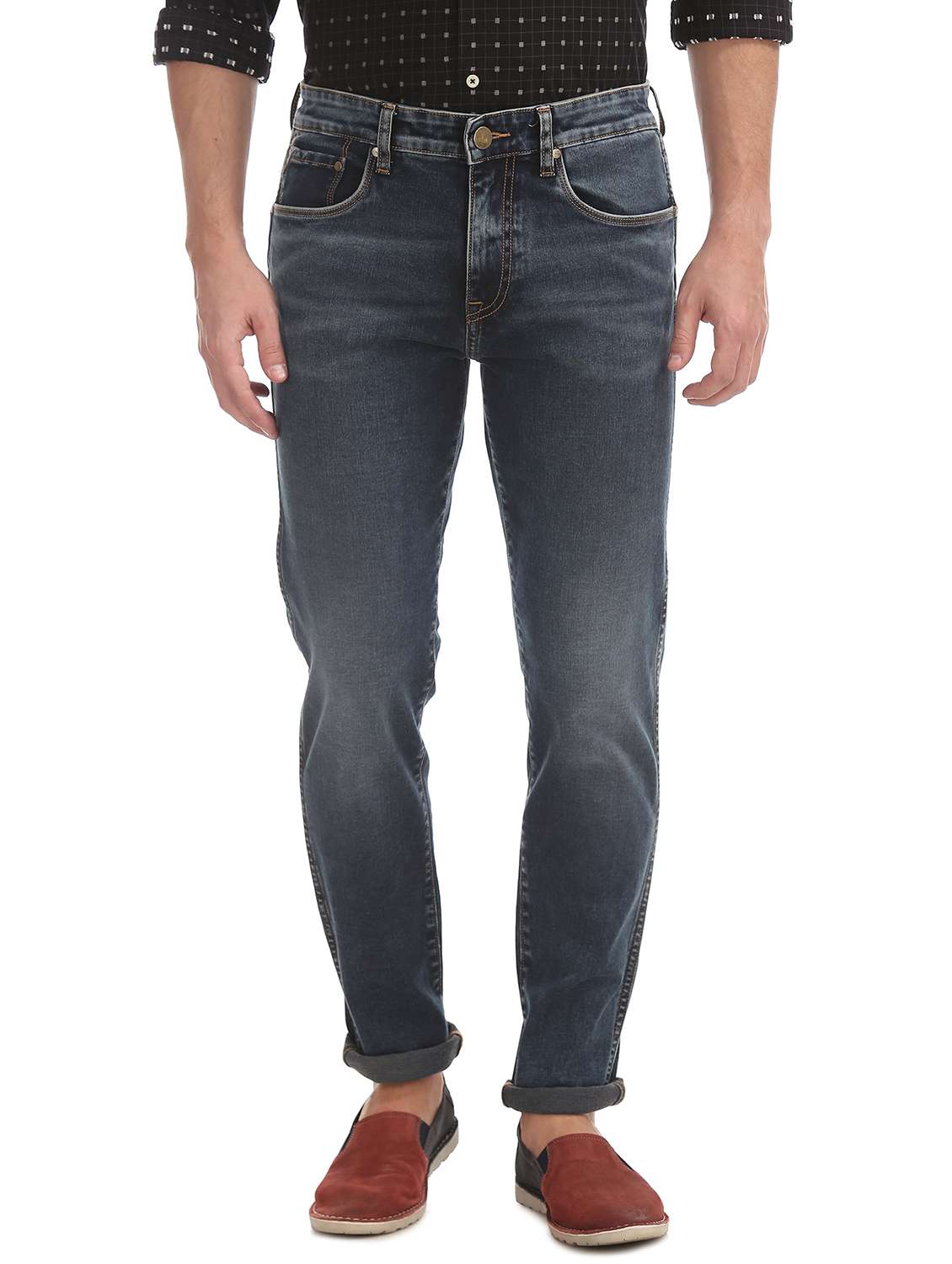 dark blue solid stone washed jean