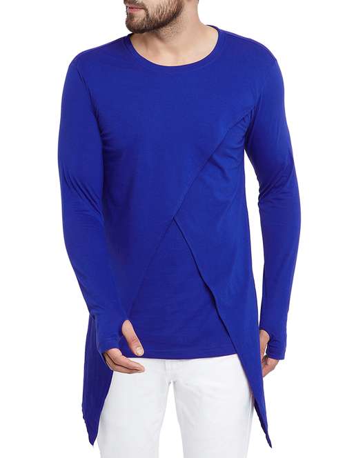 blue solid thumb hole t-shirt
