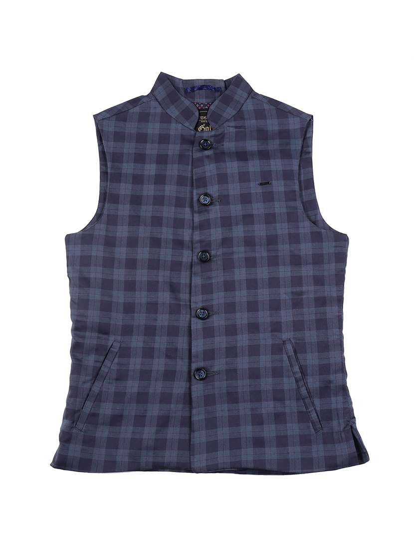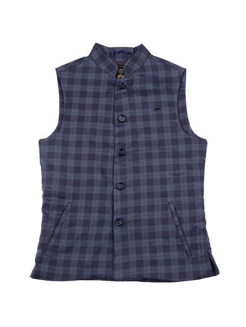 pocket detail checkered nehru jacket
