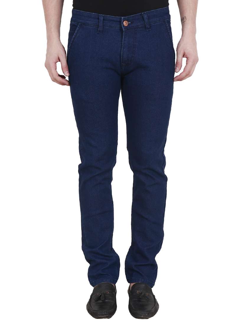 dark blue cotton blend plain jeans