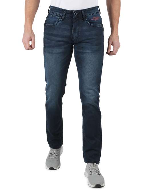 - » dark blue light-washed denim jean