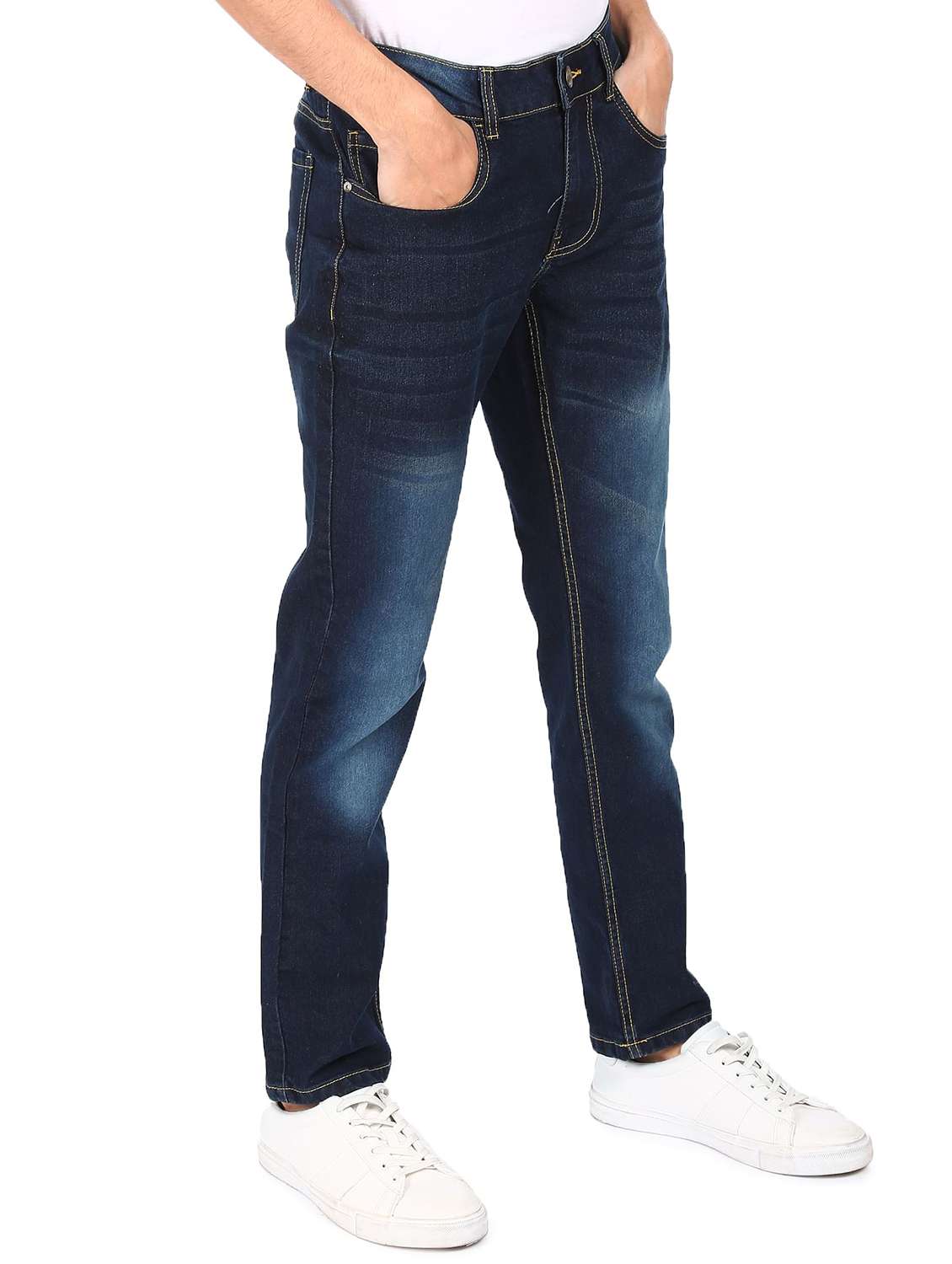 dark blue solid stone washed jean
