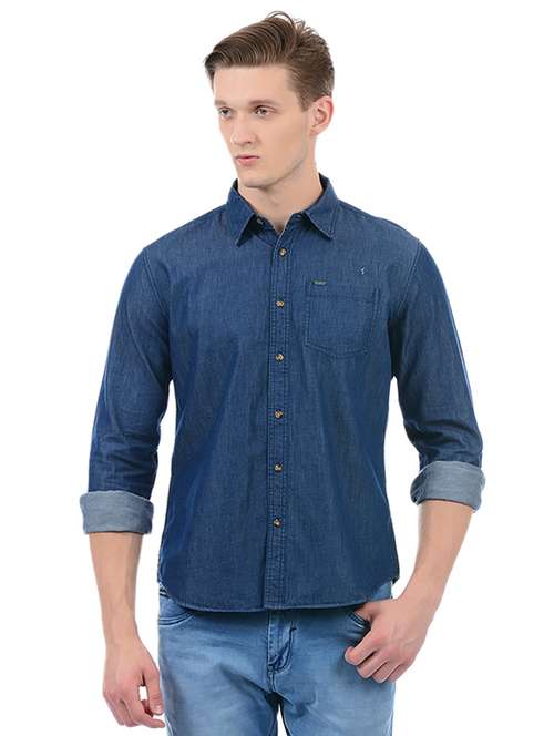 blue cotton blend casual shirt