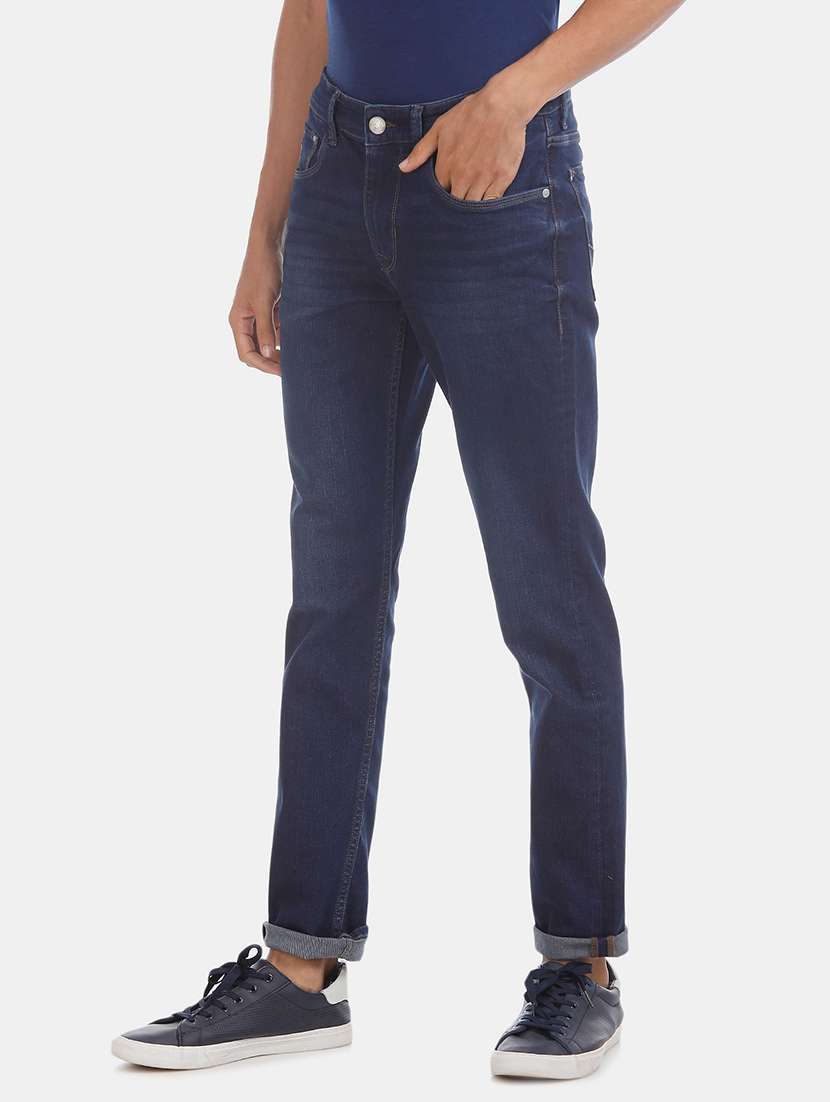 dark blue cotton blend jeans