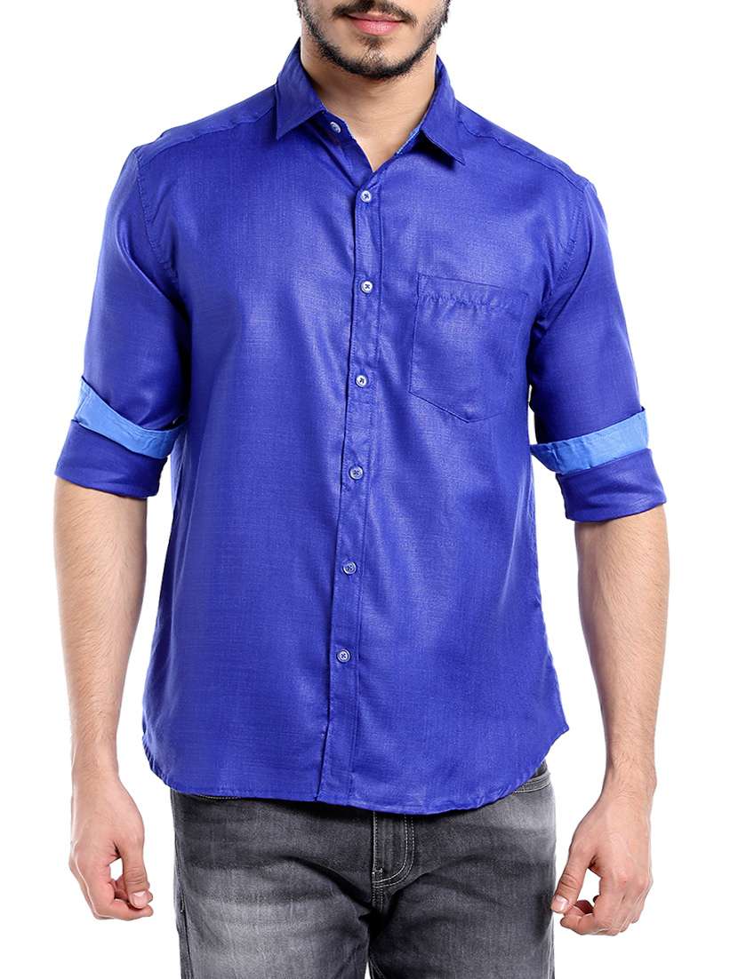- » dark blue cotton blend casual shirt