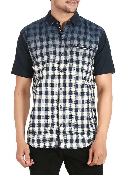 navy blue cotton casual shirt - 14647329 - Very Small Image - 1