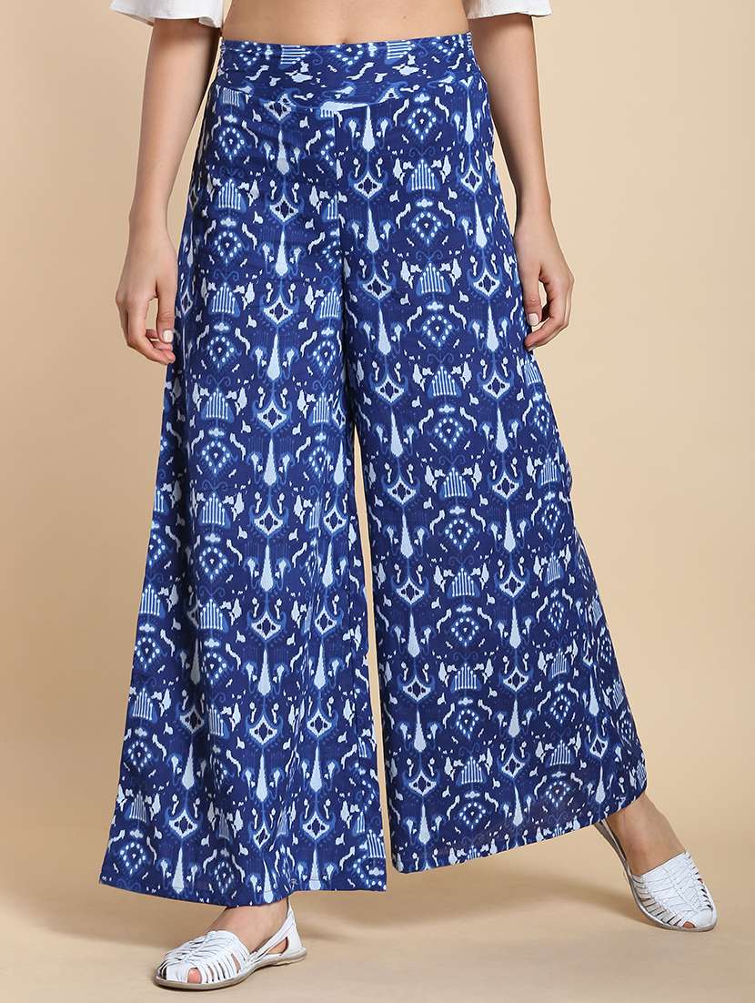 indigo print flared palazzo