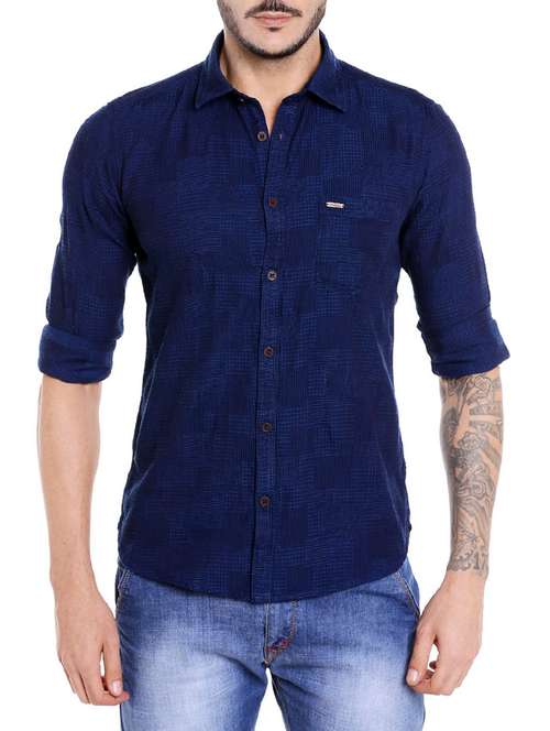 dark blue cotton casual shirt - 14423829 - Very Small Image - 1