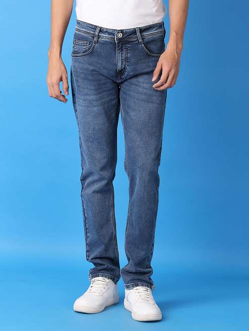 men blue plain jeans