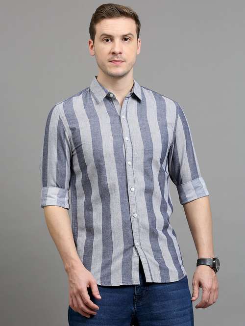 - » men vertical striped blue and white cotton slim fit casual shirt