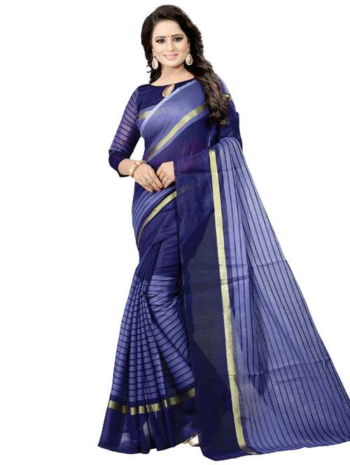- » women's stripes navy blue colored saree with blouse