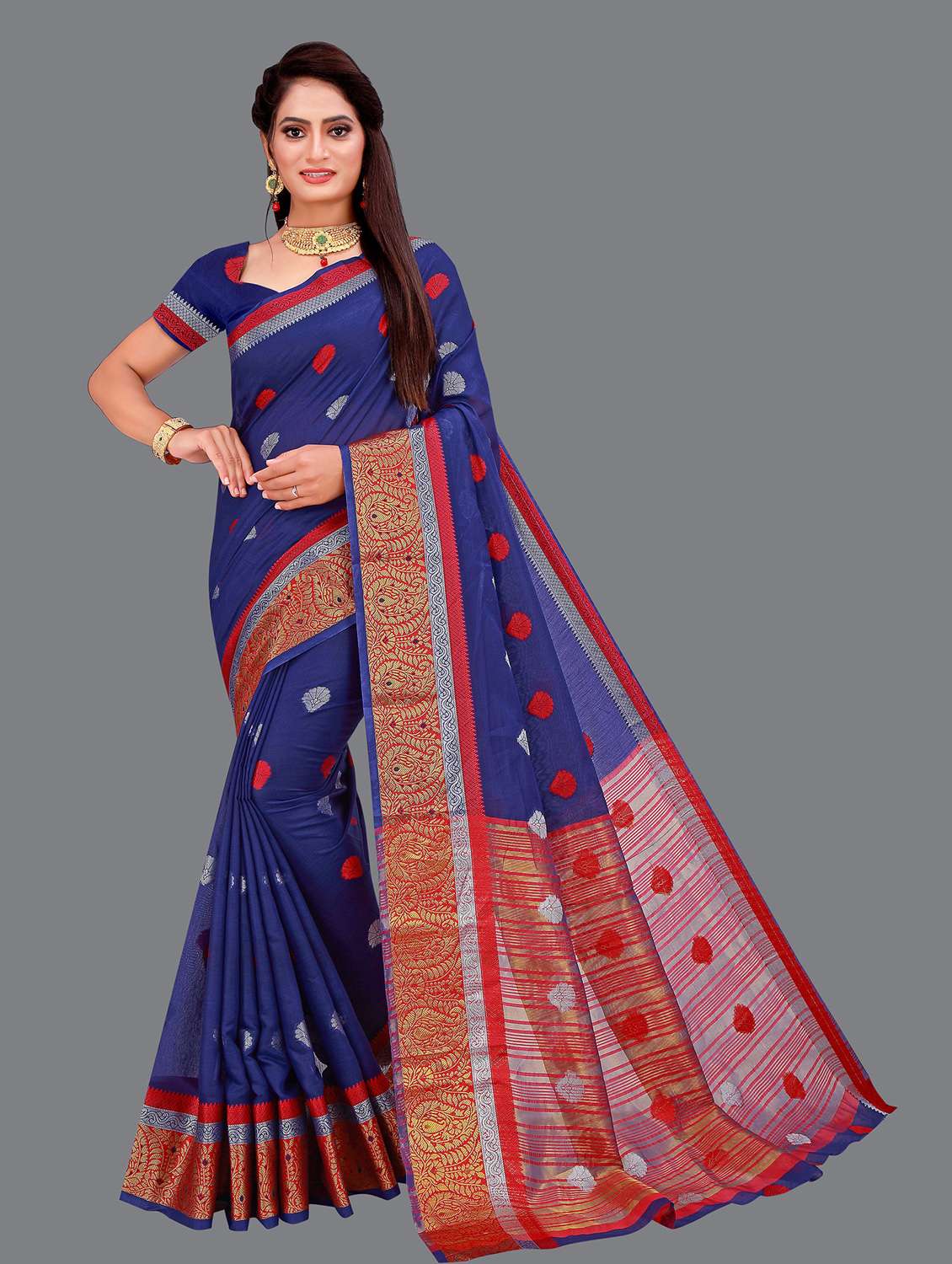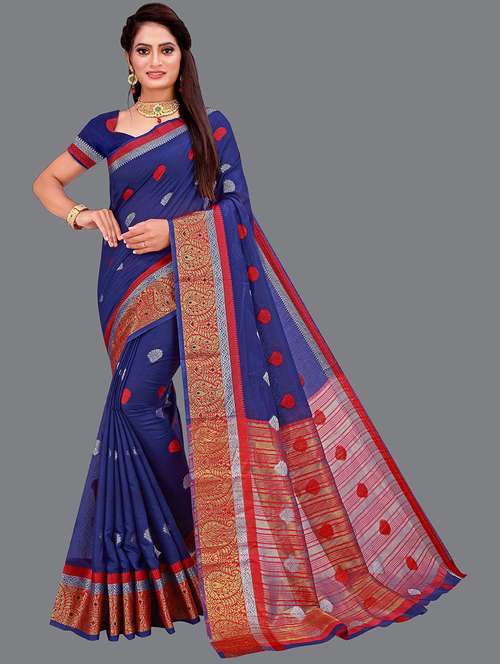 - » women's floral dark blue colored saree
