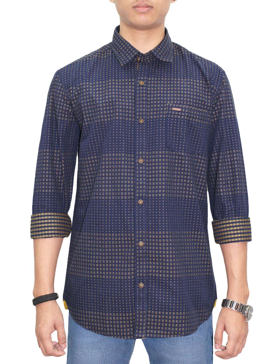 dark blue cotton casual shirt