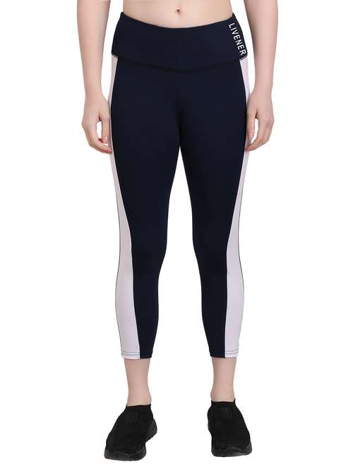 - » dark blue high rise color block active wear tights