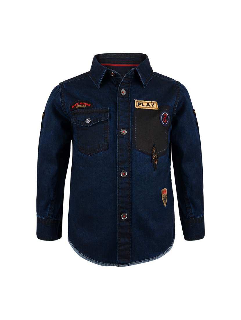 - » dark blue patch detail long sleeve shirt