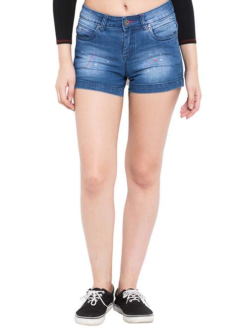 - » dark blue denim shorts