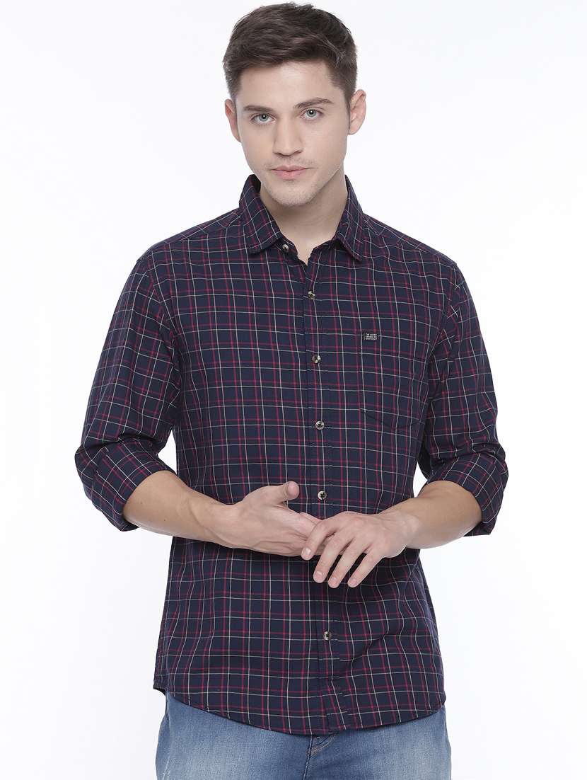 dark blue checkered casual shirt