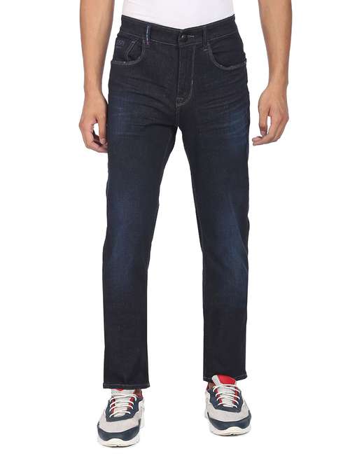 - » dark blue light-washed denim jean