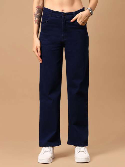 - Choose from the trendy assortment of straight fit jeans in a variety of navy blue colors and timeless designs to complete your clothing essential list.