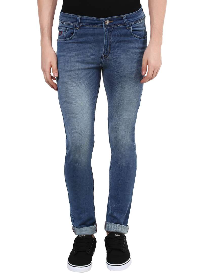 navy blue cotton washed jeans